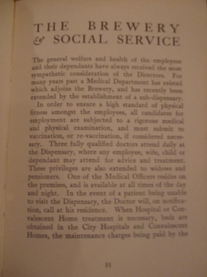An example of the contents of the book, detailing social services at Guinness