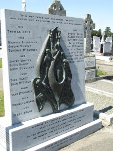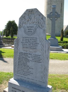 Above is a stone that caught my attention the first time I visited, and again on our visit on Monday, a memorial to the Indian Mutineers of 1920. Theres is an interesting story. Upon hearing of the uprising in their homeland, hundreds of Irish Soldiers fighting in the British army in India turned their guns on their generals. Though close to 400 men took part, the mutiny was quickly suppressed and eighty-eight of those men were court martialled. Fourteen were sentenced to death and the rest given up to 15 years in jails in Dagshai and Solan. Two died in the mutiny, Pte Sears and Pte Smyth. Thirteen of the men sentenced to die had their sentences commuted to life imprisonment, though one man, James Daly was shot dead by firing squad. He was considered the leader of the mutiny at just 21 years old.