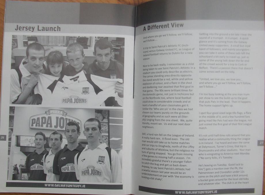 This bit, which brought about nice comments and nods of agreement from various League of Ireland supporters, was printed in the Galway United F.C match programme for the Drogheda Utd./St. Patrick’s Athletic clashes. More importantly than little old Come Here To Me, the match programme also featured League of Ireland hero Michael D. Higgins T.D